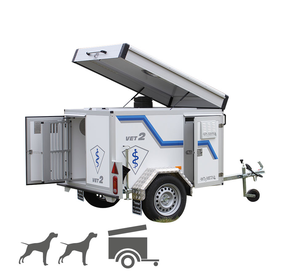 Der Hundeanhänger VET von WT‑Metall ist eine professionelle Lösung mit extra großen Boxen (Boxenhöhe 85 cm) und durchdachtem Innenraum. Mit Thermoisolierung, starker Belüftung, komfortabler Ausstattung und robuster Bauweise bietet er Sicherheit, Hygiene und Komfort für Mensch und Tier – und ist so konzipiert, dass Hunde stressfrei und sicher ans Ziel kommen. Hinweis: gemäß der Tierschutztransportverordnung bis 65 cm Widerristhöhe.