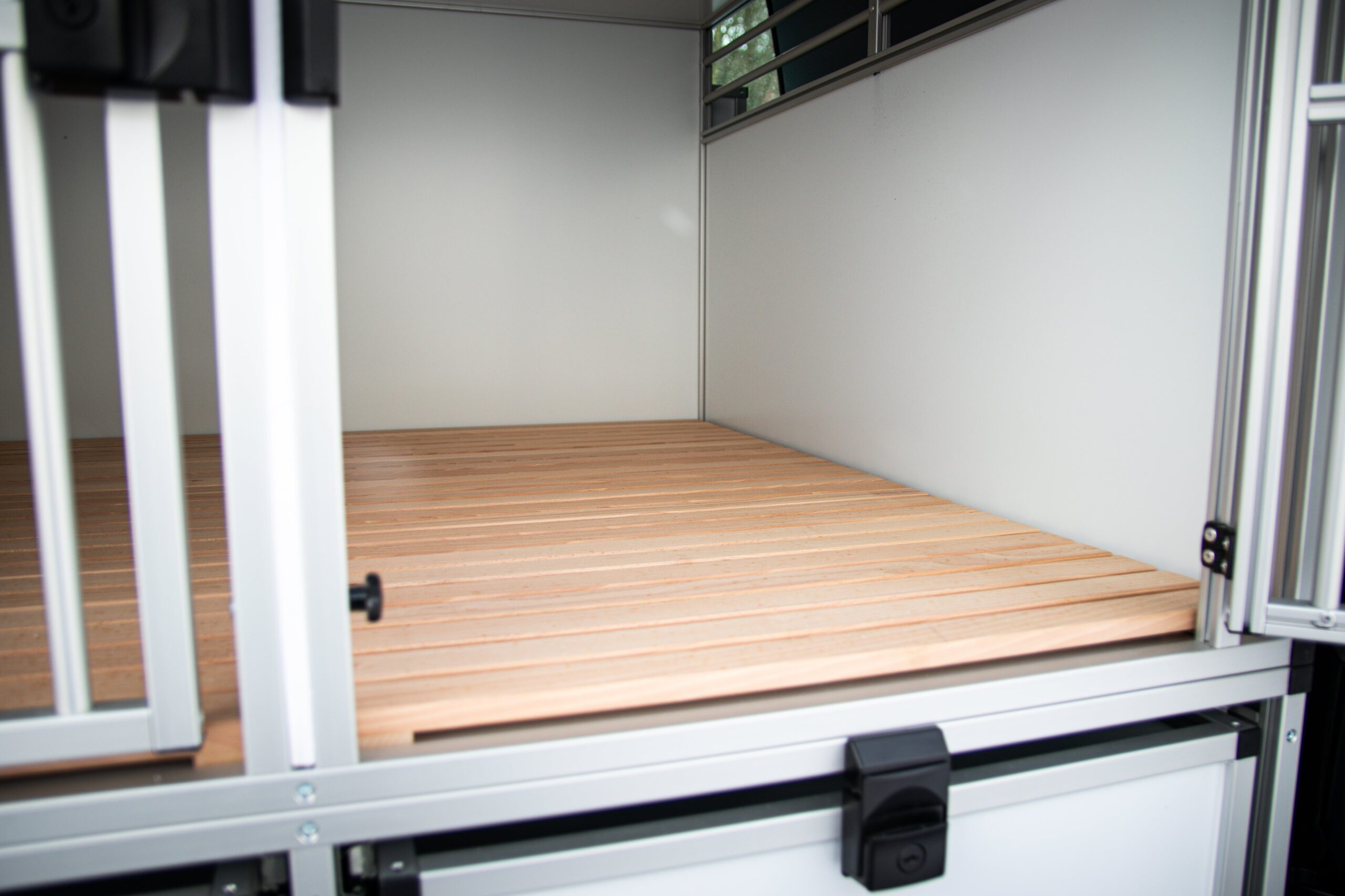 Alternativ zur Gummimatte bieten wir für deine Hundebox auch einen hochwertigen Holzrost, auf dem dein Hund bequem liegt. Gleichzeitig sorgt er für eine optimale Luftzirkulation, die besonders bei Nässe komfortabel und hygienisch ist – für noch mehr Qualität.