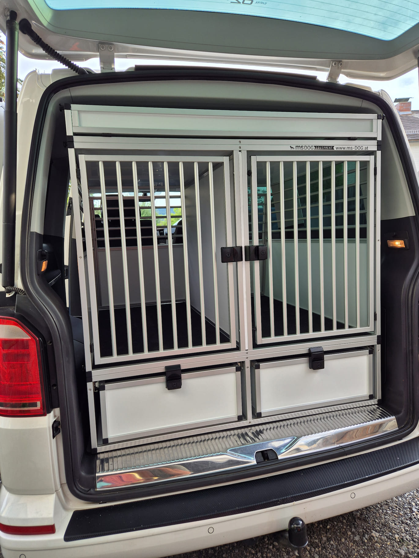 Tolle maßangefertigte Doppelbox für meinen VW Passat. Bin super zufrieden. Die Box passt perfekt und meine Hunde fühlen sich total wohl. Das Beste: Kein Abfärben auf das Fell meines weißen Schäferhundes! Top Qualität. Es sind absolute Profis am Werk. Freundliche und kompetente Beratung. Sehr empfehlenswert. Auch die Lieferung verlief reibungslos und der Einbau war kinderleicht. Jederzeit wieder!