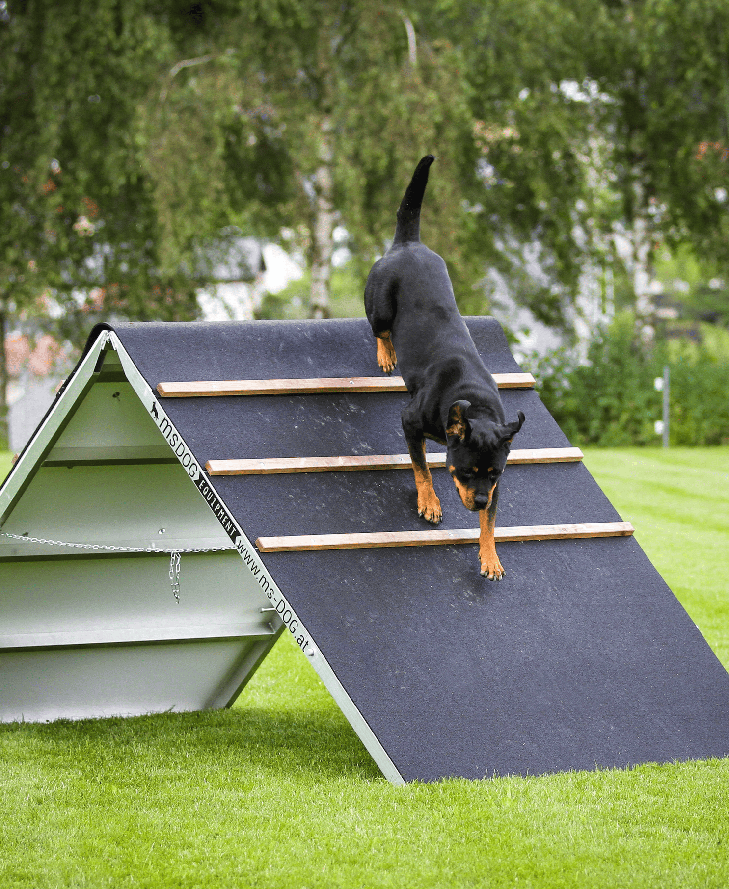 Unsere Hundesportgeräte sind langlebig und halten allen Witterungseinflüssen stand – zudem lassen sie sich modular an das Trainingslevel sowie das Platzverhältnis anpassen. Wir empfehlen, die Geräte trocken und geschützt zu lagern.